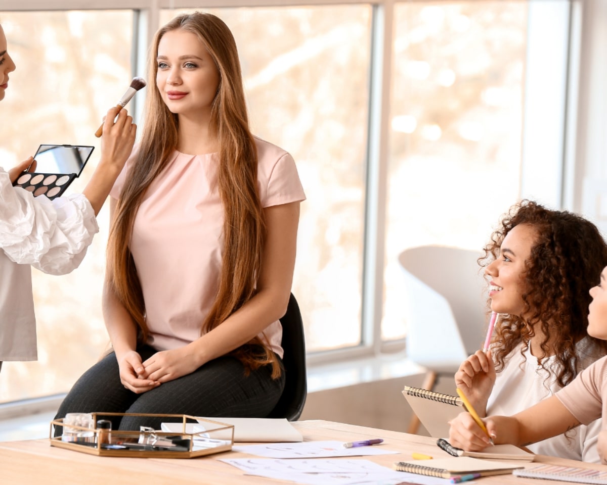 • techniki aplikowania podkładu, korektora pod oczy, tuszowanie niedoskonałości cery,