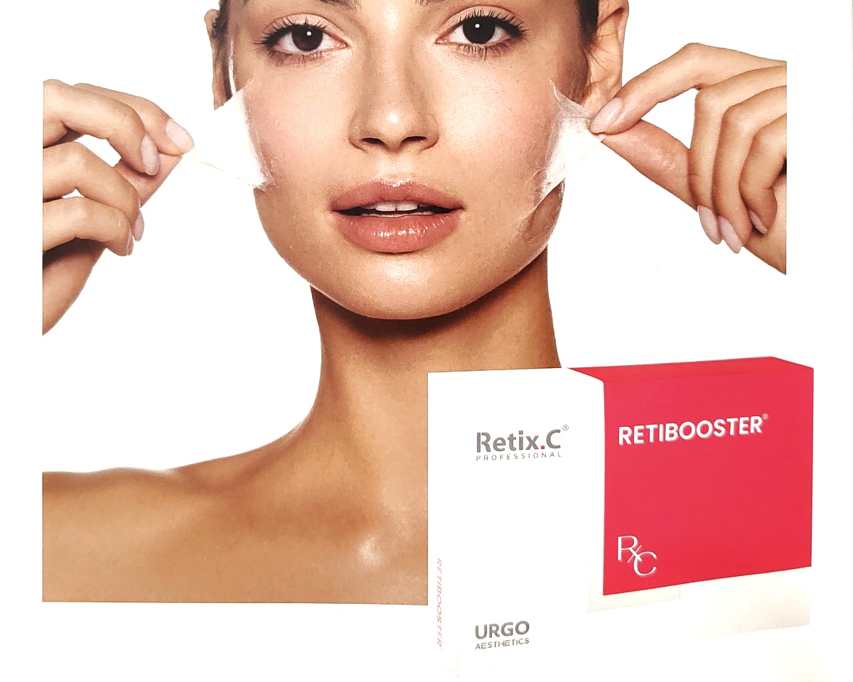 RETIBOOSTER® to innowacyjna terapia retinolowa o wielokierunkowym działaniu zapewniająca efekt ”nowo narodzonej skóry” i jej odnowę na poziomie komórkowym. PATENT PENDING to unikalne połączenie 4% czystego retinolu z 2% czynników zrostu TGF-β o szlaku metabolicznym identycznym jak retinol. Połączenie tych dwóch substancji opiera się na ich synergicznym działaniu, w którym czynniki wzrostu TGF-β wzmacniają działanie retinolu i jednocześnie stymulują produkcję lipidów w skórze, dzięki czemu podrażniające działanie retinolu zostaje zminimalizowane, a następuje stymulacja syntezy kolagenu typu I, elastyny i kwasu hialuronowego, siarczanu chondroityny i proteoglikanów. Witamina C w połączeniu z kwasem ferulowym, kwasem mlekowym i niacynamidem ma silne działanie antyoksydacyjne i rozświetlające.